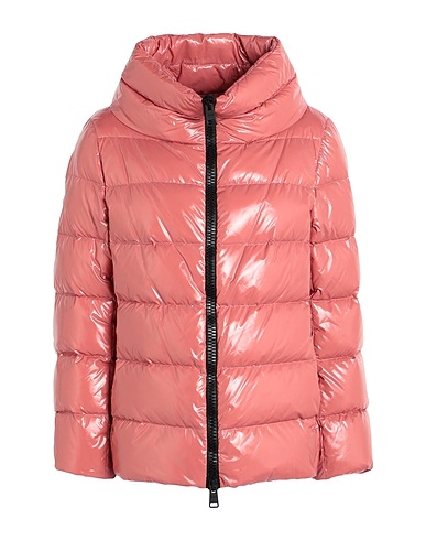 down jacket, shell, quilted, patent-effect, brand logo, solid color, long sleeves, goose down interior, heavyweight padding, zipper fastening, slit pockets, contains non-textile parts of animal origin, machine wash or dry clean, do not tumble dry
