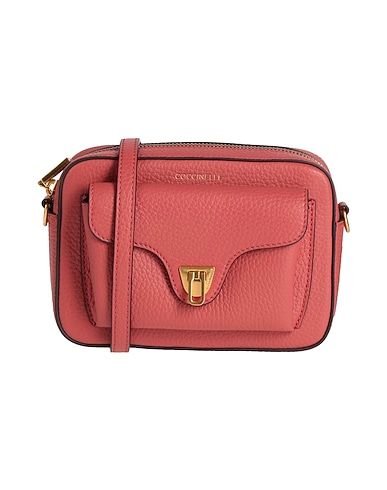 camera bag, pebbled-leather, solid color, brand logo, zipper fastening, fully lined, external pocket, adjustable shoulder strap, small size, contains non-textile parts of animal origin