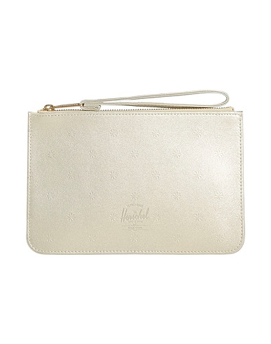 clutch, synthetic material, metallic, floral-print, brand logo, zipper fastening, fully lined, bag handle, medium size