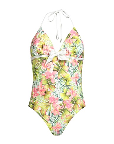 swimsuit, synthetic jersey, hawaiian-print, brand logo, tie fastening, fully lined, no underwire bra, stretch, hand wash, do not bleach, do not tumble dry