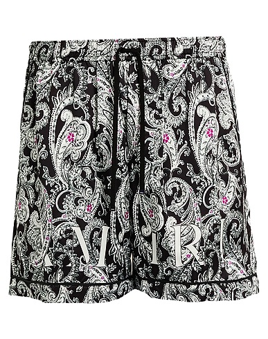 casual shorts, satin, paisley-print, brand logo, drawstring waist, drawstring fastening, pockets