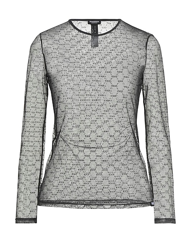top, tulle, stretchy fabric, logo-print, no appliqués, crewneck, long sleeves, machine wash, do not tumble dry