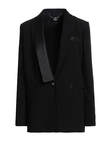 single-breasted blazer, crepe, solid color, satin trims, lapel collar, long sleeves, shoulder pads, fully lined, 1 button, welt pockets, one chest pocket, dry clean, do not bleach, do not tumble dry