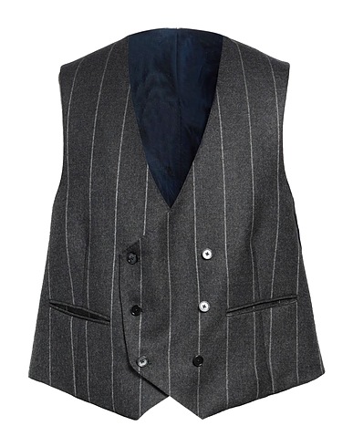 flannel, no appliqués, pinstriped, double-breasted, sleeveless, fully lined, button fastenings, welt pockets, dry clean, do not bleach, do not tumble dry, designed for a loose fit