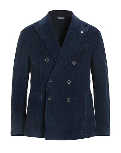double-breasted blazer, corduroy, solid color, brooch, lapel collar, long sleeves, partially lined, button fastenings, patch pockets, one chest pocket, dual back vents, stretch, machine wash, do not bleach, do not tumble dry
