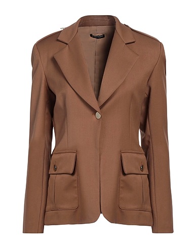single-breasted blazer, twill, solid color, tabs, lapel collar, long sleeves, shoulder pads, fully lined, 1 button, bellows pockets, stretch, dry clean, do not bleach, do not tumble dry