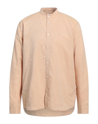 regular-fit shirt, woven, plain colour, brand logo, mandarin collar, long sleeves, buttoned cuffs, button fastenings