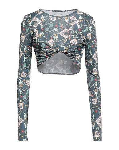 jersey, draped, floral-print, crewneck, long sleeves, no pockets, crop top