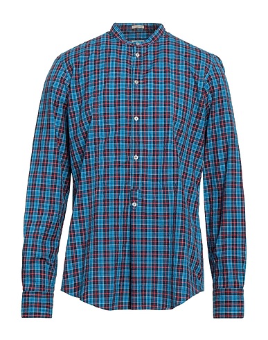 regular-fit shirt, woven, tartan pattern, no appliqués, mandarin collar, long sleeves, buttoned cuffs, button fastenings