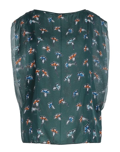 top, voile, floral-print, no appliqués, crewneck, short sleeves, fully lined, this brand runs small