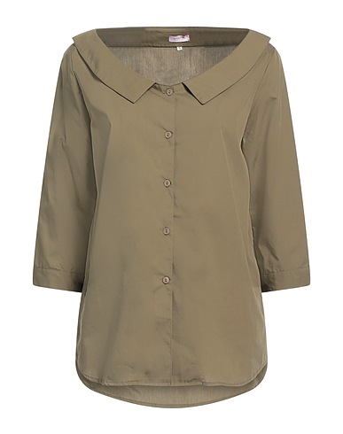shirt, woven, plain colour, no appliqués, scoop neckline, 3/4 length sleeves, buttoned cuffs, button fastenings, machine wash or dry clean, do not bleach, do not tumble dry