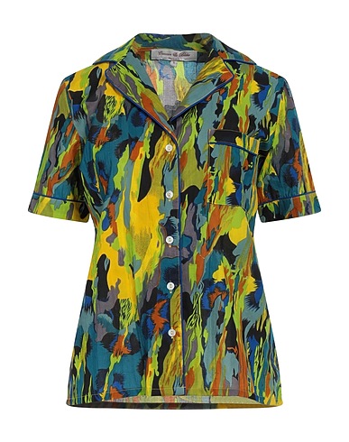 woven, no appliqués, multicolour, classic collar, short sleeves, button fastenings, single chest pocket, shirt