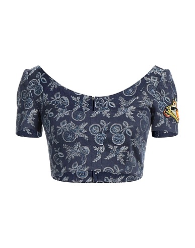 jacquard, brand logo, embellished, floral-print, scoop neckline, short sleeves, zip fastening, no pockets, crop top