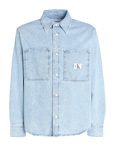 denim, faded, brand logo, plain colour, light wash, classic collar, long sleeves, snap button cuffs, snap fastenings