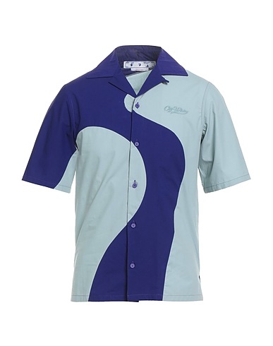 woven, brand logo, two-tone, classic collar, short sleeves, button fastenings, regular-fit shirt