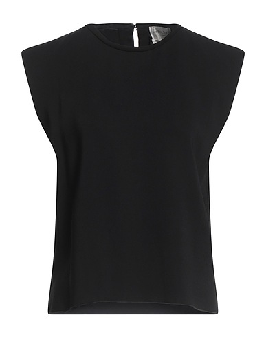 top, crepe, no appliqués, plain colour, crewneck, sleeveless, 1 button, without pockets, stretch, dry clean, do not bleach, do not tumble dry, this brand runs large