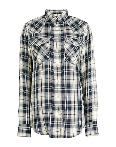 shirt, twill, brand logo, checked, classic collar, long sleeves, snap-fastening cuffs, snap fastenings, two chest pockets, dry clean, do not bleach, do not tumble dry