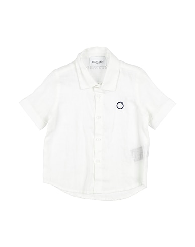 linen, plain colour with appliqués, embroidered logo, classic collar, short sleeves, button fastenings, machine wash, do not bleach, do not tumble dry