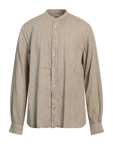regular-fit shirt, linen, plain colour, no appliqués, mandarin collar, long sleeves, buttoned cuffs, button fastenings, contains non-textile parts of animal origin, machine wash or dry clean, do not bleach, do not tumble dry, this brand runs small