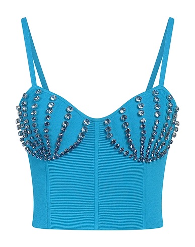 crop top, knitted, lightweight knit, plain colour with appliqués, crystals, deep neckline, sleeveless, stretch, hand wash or dry clean, do not bleach, do not tumble dry