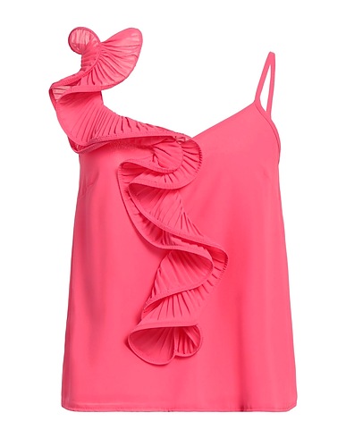 ruched top, crepe, plain colour, ruffles, pleated, deep neckline, sleeveless, machine wash or dry clean, do not bleach, do not tumble dry