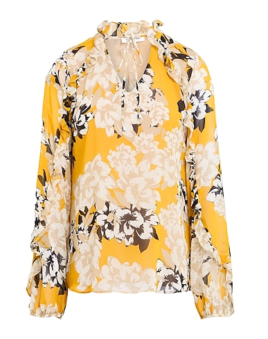 ruched top, crepe, floral-print, no appliqués, v-neck, long sleeves, fully lined, machine wash or dry clean, do not bleach, do not tumble dry
