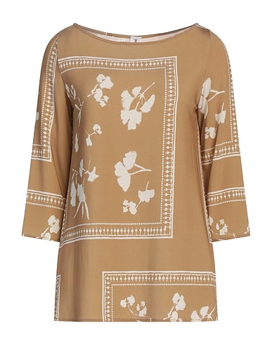 top, jersey, floral-print, no appliqués, scoop neckline, 3/4 length sleeves, stretch, machine wash or dry clean, do not bleach, do not tumble dry