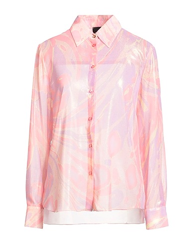 shirt, organza, metallic, multicolour, brand logo, classic collar, long sleeves, shoulder pads, buttoned cuffs, button fastenings, machine wash or dry clean, do not bleach, do not tumble dry