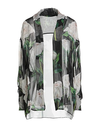 overcoat, chiffon, brand logo, floral-print, deep neckline, single-breasted , long sleeves, buttoned cuffs, unlined, without pockets, dry clean, do not bleach, do not tumble dry
