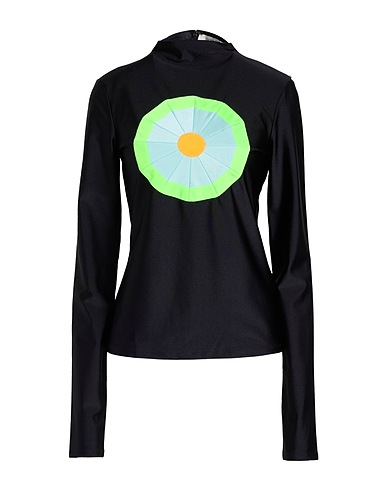 t-shirt, synthetic jersey, stretchy fabric, plain colour with appliqués, embellished, mock neck, long sleeves, zip fastening, dry clean, do not bleach, do not tumble dry