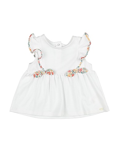 jersey, stretchy fabric, plain colour with appliqués, bow-detailed, brand logo, piped trims, crewneck, short sleeves, snap fastenings, machine wash, do not bleach, do not tumble dry