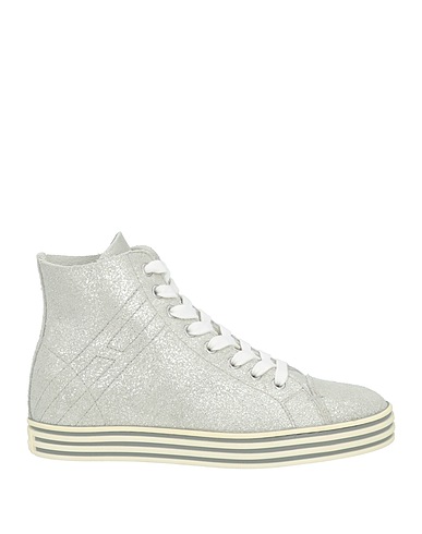 leather, metallic, no appliqués, plain colour, leather lining, lace-up, round toe, flat, rubber sole, contains non-textile parts of animal origin, high-top trainers