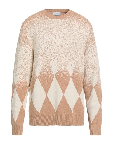 knitted, medium-weight knit, no appliqués, two-tone, round collar, long sleeves, no pockets, large sized
