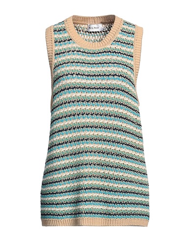 knitted, medium-weight knit, no appliqués, striped, crewneck, sleeveless, without pockets, machine wash or dry clean, do not bleach, do not tumble dry