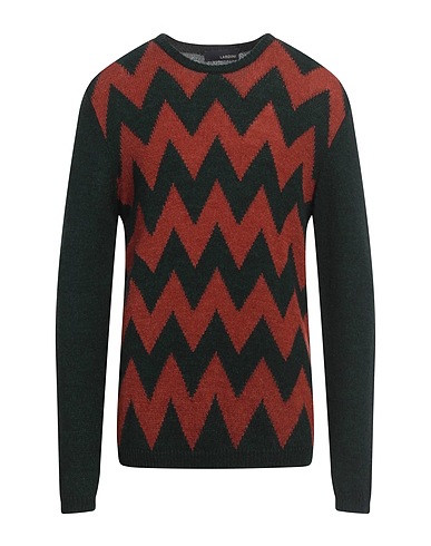 knitted, medium-weight knit, no appliqués, two-tone, crewneck, long sleeves, dry clean, do not bleach, do not tumble dry