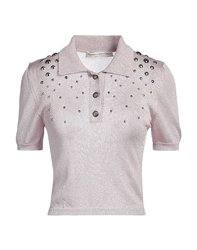 knitted, metallic, lightweight knit, plain colour with appliqués, studs, polo collar, short sleeves, button fastenings, dry clean, do not bleach, do not tumble dry