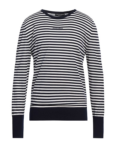 knitted, heavy-weight knit, embroidered logo, striped, crewneck, long sleeves, dry clean, do not bleach, do not tumble dry, this brand runs large