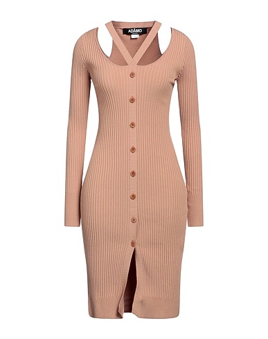 jersey, ribbed, no appliqués, plain colour, deep neckline, long sleeves, unlined, button fastenings, without pockets, bodycon dress