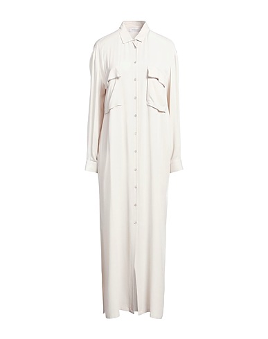 shirt dress, crepe, plain colour with appliqués, embellished, classic collar, long sleeves, buttoned cuffs, unlined, button fastenings, two chest pockets, side slit hemline, dry clean, do not bleach, tumble dry