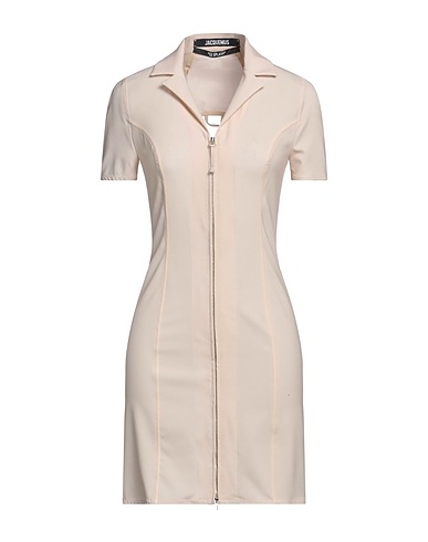 plain weave, no appliqués, plain colour, lapel collar, short sleeves, unlined, zipper closure, no pockets, stretch, pencil style
