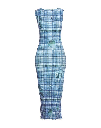 bodycon dress, knitted, lightweight knit, tartan pattern, brand logo, crewneck, sleeveless, unlined, stretch, hand wash or dry clean, do not bleach, do not tumble dry