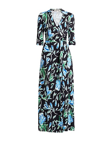wrap dress, jersey, floral-print, belt, classic collar, long sleeves, unlined, tie fastening, without pockets, dry clean