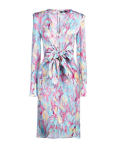 dress, satin, floral-print, brand logo, v-neck, long sleeves, shoulder pads, buttoned cuffs, unlined, zip fastening, dry clean, do not bleach, do not tumble dry