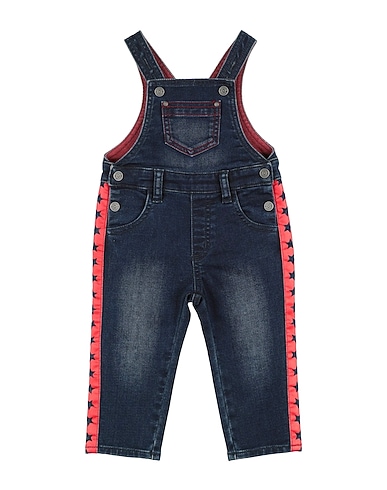 denim, plain colour with appliqués, print, dungarees top, sleeveless, button fastenings, multipockets, machine wash, do not bleach, do not tumble dry