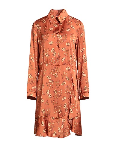 shirt dress, satin, floral-print, ruffles, classic collar, long sleeves, unlined, button fastenings, slit pockets, hand wash or dry clean, do not bleach, do not tumble dry, be the best-dressed bridesmaid or wedding guest with this designer piece, perfect for any ceremony
