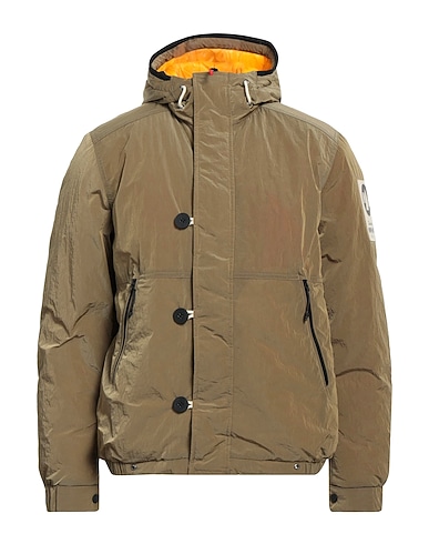 techno fabric, brand logo, solid colour with appliqués, hooded collar, single-breasted , long sleeves, padded inner, zipper closure, snap buttons fastening, multipockets, generic outerwear
