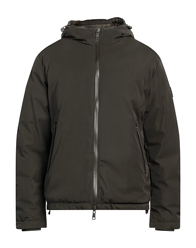 techno fabric, brand logo, solid colour, hooded collar, single-breasted , long sleeves, padded inner, multipockets, generic outerwear