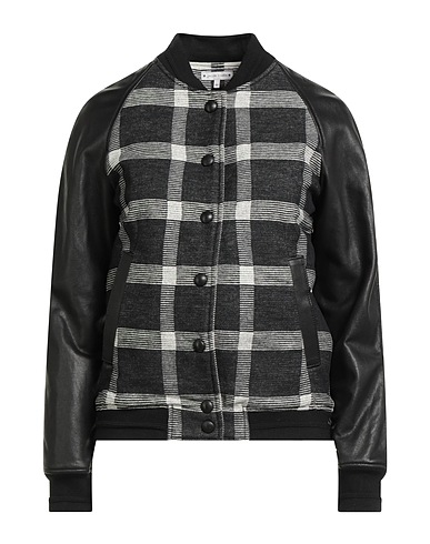 varsity jacket, flannel, leather, no appliqués, checked, long sleeves, fully lined, snap fastenings, pockets, contains non-textile parts of animal origin, specialist clean or dry clean, do not bleach, do not tumble dry, do not iron