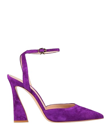 pumps, suede, plain colour, no appliqués, buckle-fastening ankle strap, pointed toe, geometric heel, leather sole, leather lining, contains non-textile parts of animal origin
