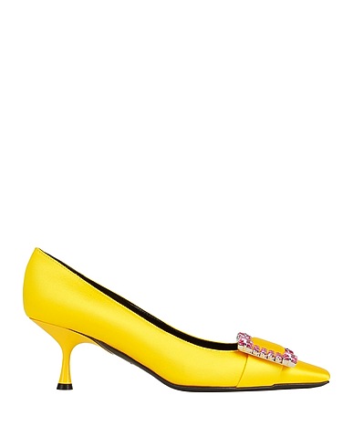 satin, rhinestones, solid colour with appliqués, leather backing, square toeline, spool heel, leather sole, contains non-textile parts of animal origin, courts